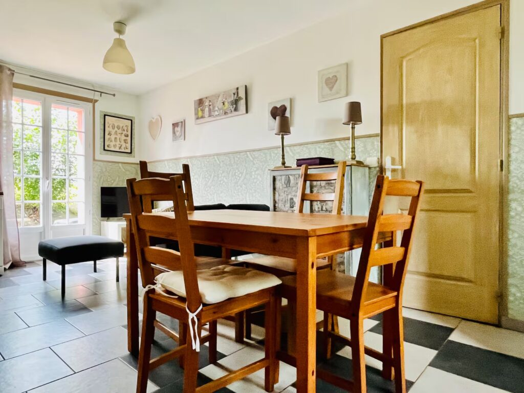 La maison dispose de deux chambres bien agencées, d’une pièce de vie agréable et d’une cuisine entièrement équipée pour préparer vos repas en toute simplicité. L’ensemble est pensé pour offrir un séjour pratique et confortable, que ce soit pour un court séjour ou quelques jours de vacances.